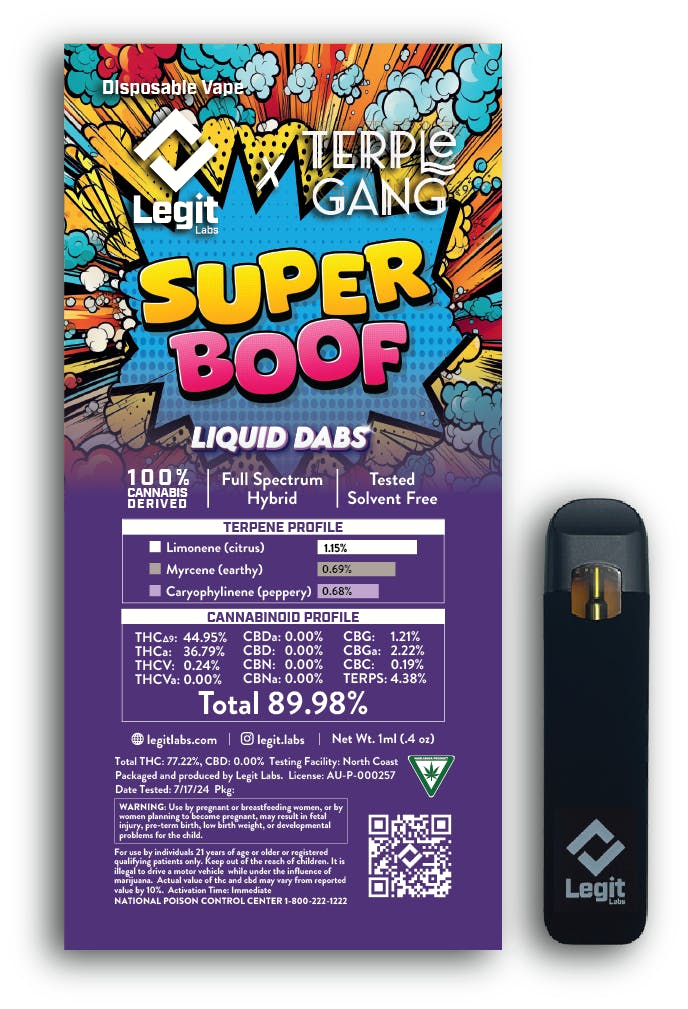 Super Boof Collab/Terple Gang | Disposable Vape Cart | 1G